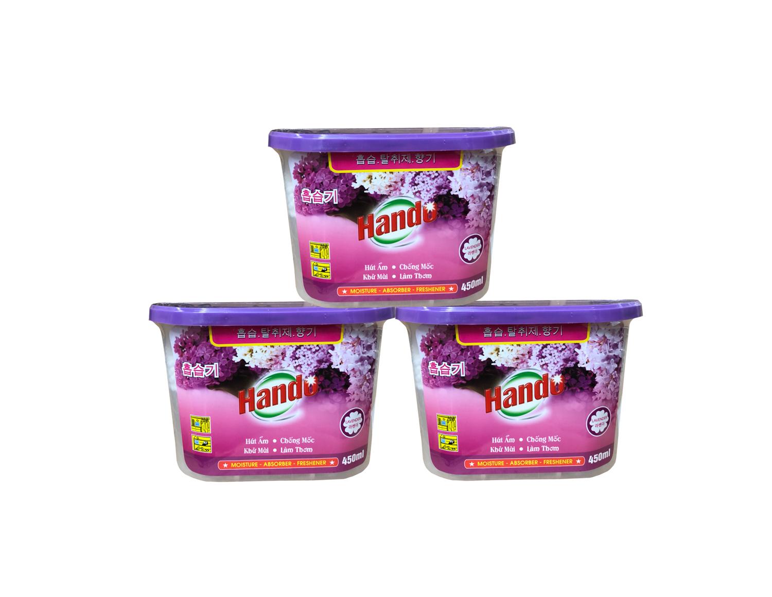 Công thức hút ẩm, chống ẩm mốc tiên tiến Hương thơm nhẹ, khử mùi hiệu quả Cần thiết cho mọi gia đình Thông số sản phẩm Tên sản phẩm : 5 Bình hút ẩm Hando