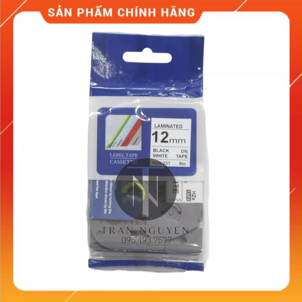 ✨[Combo 5 hộp] Nhãn In Brother HZe-231 - Đen nền trắng 12mm x 8m - Hàng nhập khẩu