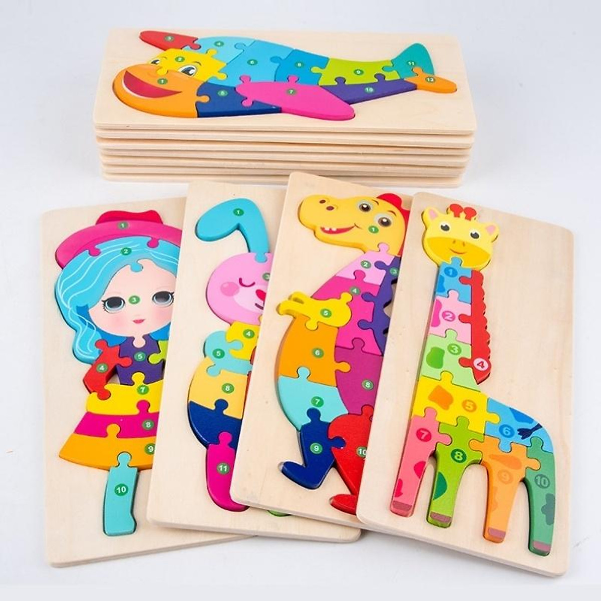 - Tranh ghép nối số bằng gỗ dập nổi 3D từ 1-10 nhiều chủ đề giúp bé phát triển tư duy và vận động tinh, tăng khả năng cầm nắm cho bé từ nhỏ