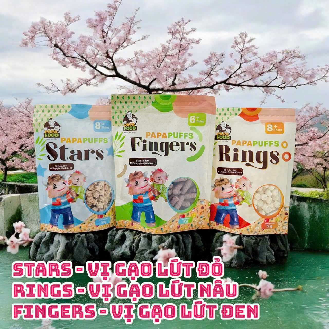 1. Tên sản phẩm: Bánh ăn dặm PAPAPUFFS FINGERS - BÍ ĐỎ VÀ KHOAI LANG TÍM . 2. Thành phần: Được sản xuất từ 100% Nguyên Liệu Hữu Cơ - Gồm gạo lứt hữu cơ,