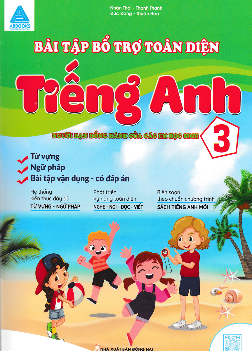 - Bài Tập Bổ Trợ Toàn Diện Tiếng Anh 3 Bài Tập Bổ Trợ Toàn Diện Tiếng Anh 3 - Người bạn đồng hành của các em học sinh” theo Chuẩn Chương trình giáo dục phổ thông môn Tiếng Anh năm 2018 của Bộ Giáo dục và Đào tạo và đặc biệt bám sát theo từng unit của sách giáo khoa Tiếng Anh 3 theo chương trình mới. Quyển sách sẽ tập hợp đa dạng các bài tập và đề kiểm tra về ngữ âm, từ vựng, ngữ pháp, và đặc biệt là năng lực giao tiếp bằng tiếng Anh thông qua bốn kĩ năng Nghe, Nói, Đọc, Viết. Đây chính là một nguồn học liệu phong phú giúp các em có thể tự ôn tập, củng cố kiến thức đã được học trên lớp; tự kiểm tra đánh giá trình độ tiếng Anh sau mỗi tiết học hoặc sau mỗi học kì; cũng như cung cấp tư liệu cho giáo viên tổ chức ôn tập trên lớp theo từng đơn vị bài học. Đặc biệt quyển sách này cũng hỗ trợ phụ huynh học sinh cùng con học tập tại nhà để việc quản lí, kiểm soát chất lượng học tập môn học trở nên dễ dàng hơn. Nội dung quyển sách bao gồm 2 phần: Phần 1: Unit Review and Tests (Các đề ôn tập và bài kiểm tra). Các đề ôn tập trong phần này sẽ được trình bày dưới dạng các bài luyện tập theo từng unit (Unit Review). Sau mỗi 2 hoặc 4 unit sẽ có một bài kiểm tra (Test) tương ứng với từng học kì để học sinh có thể tự kiểm tra . Phần 2: Answer Key (Đáp án). Hệ thống đáp án rõ ràng và lời giải chi tiết đượctrình bày khoa học ở phần cuối quyển sách giúp các em nhận ra ưu, khuyết điểm trong quá trình làm bài tập và giúp việc tự học trở nên hiệu quả hơn. Hy vọng những kiến thức trong quyển sách này sẽ là một nguồn tài liệu tham khảo bổ ích để trở thành “người bạn đồng hành” cùng các em học sinh lớp 3 “xây nên những viên gạch vững chắc” trong hành trình chinh phục đỉnh cao tri thức tiếng Anh. Để làm phần nghe (Listening) trong các đề kiểm tra (Mid-term Test, End-of-term Test), quý độc giả vui lòng quét mã QR được cung cấp ở mỗi bài Test. Xin chân thành cảm ơn quý độc giả đã lựa chọn quyển sách này! Nhóm tác giả Quyển sách “BÀI TẬP BỔ TRỢ TOÀN DIỆN TIẾNG ANH 3 – Người bạn đồng hành của các em học sinh” được một đội ngũ tác giả sở hữu kinh nghiệm dồi dào trong lĩnh vực giảng dạy Tiếng Anh biên soạn một cách khoa học và đầy đủ nhất, với mục tiêu hỗ trợ các em học sinh: