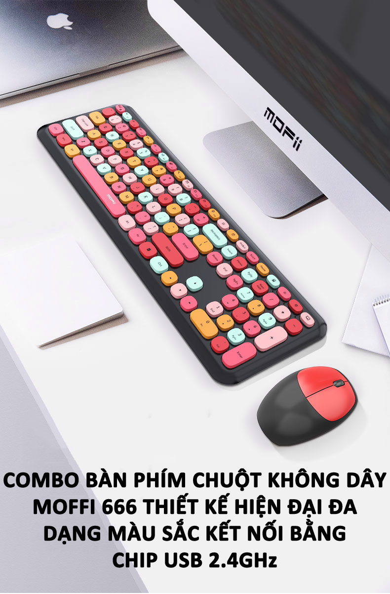 ✨Combo bàn phím chuột không dây MOFII 666 thiết kế hiện đại đa dạng màu sắc kết nối bằng chip USB 2.4GHz - HÀNG CHÍNH HÃNG