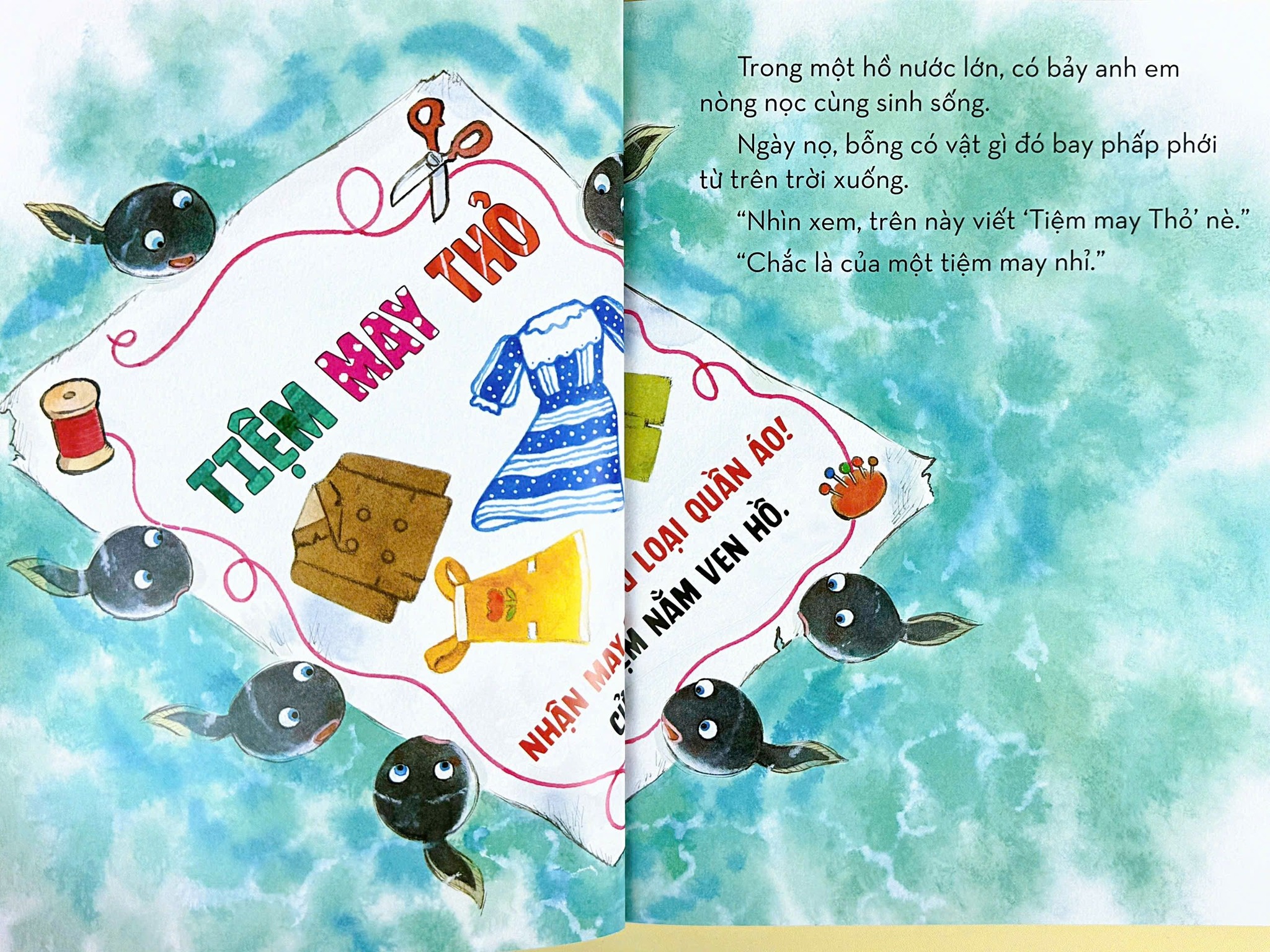 Bác Thỏ mở tiệm may, ai đi ra từ tiệm cũng có bộ đồ xinh lắm. 7 chú nòng nọc cũng muốn có, vậy là chúng đặt bác Thỏ may 7 bộ đồ. Bác Thỏ