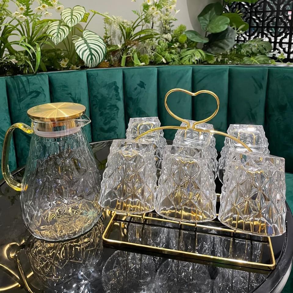 ✨Combo bình thủy tinh đựng nước uống kèm 6 cốc và giá úp