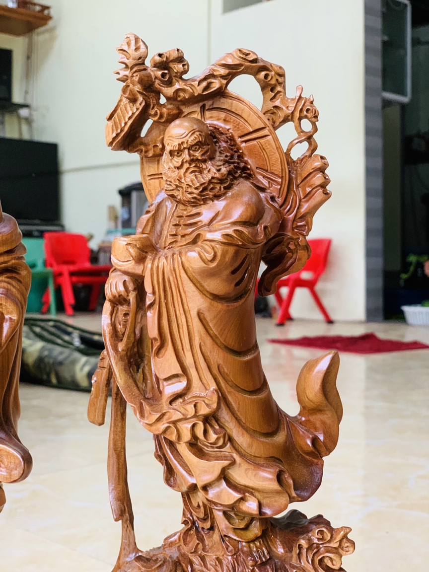 _ Tượng điêu khắc quan công được làm bằng chất liệu gỗ hương đá tự nhiên 100% _ Kích thước cao 40×16×11cm _ Tượng quan công trấn ải được làm và hoàn thiện do bàn
