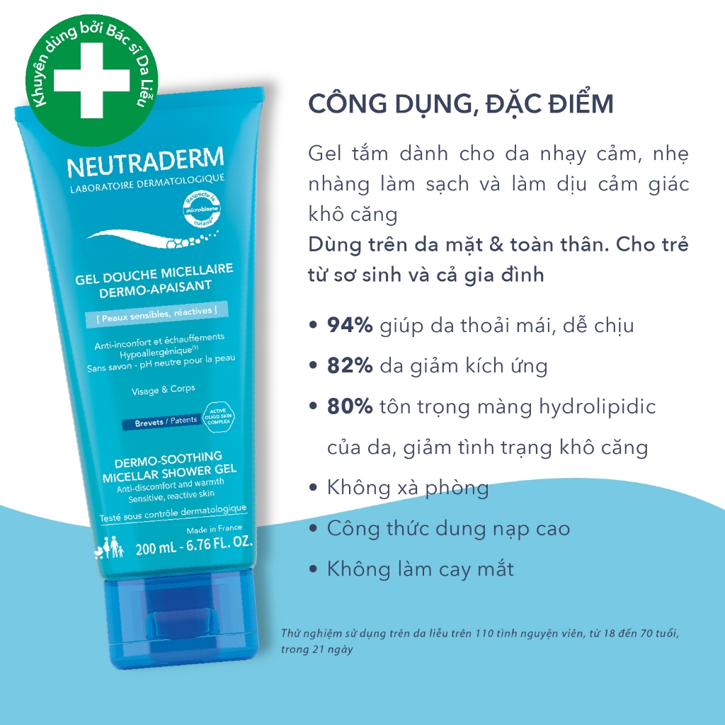 Gel Tắm Chăm Sóc Da Khô NEUTRADERM EXTRA RICH NEU Cách dùng: Đổ vài giọt vào tay và tạo bọt, nhẹ nhàng rửa sạch da mặt, da cơ thể và mái tóc của trẻ. Rửa sạch