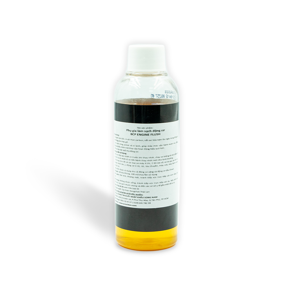 • Không chồng chất quá 6 Thùng lên nhau nhằm tránh biến dạng những chai ở lớp dưới cùng   TẠI SAO PHẢI SÚC RỬA ĐỘNG CƠ THƯỜNG XUYÊN ? Như bạn đã biết, sau một thời gian dài sử dụng, những muội than carbon sản sinh trong quá trình đốt cháy không hoàn toàn của động cơ  sẽ tích tụ và bám lại vào xupap, đầu piston, thành xi lanh hay bugi. Ngoài ra, nếu bạn đang sử dụng công nghệ động cơ cũ, chất lượng nhiêu liệu không tốt và vận hành xe không đúng cách cũng khiến cho lượng muội than này tăng nhanh. Cho dù hiện nay, nhiều hãng đã cho ra mới những công nghệ mới tối ưu hơn, hạn chế việc hình thành muội than nhưng với điều kiện nhiên liệu chưa thật sự được đảm bảo tại Việt Nam hiện nay thì chắc chắn bạn cũng phải chú ý hơn tới việc làm sạch động cơ. Khi lớp muội than này dày lên, nó có thể làm xước thành xi lanh, ảnh hưởng tới tỉ số nén động cơ khiến máy chạy ì, ồn, giật cục và tốn nhiều nhiên liệu hơn. Do đó, bạn cần phải súc động cơ để tẩy sạch lớp cặn bẩn này, tránh gây hại đến xe. LÀM THẾ NÀO ĐỂ LOẠI BỎ MUỘI CARBON ? Xe máy gần như phương tiện đi lại chủ yếu của mọi người dân Việt Nam. Mặc dù vậy, có rất ít người quan tâm đến việc làm sao để xe luôn bền, vận hành êm ái như lúc mới mua. Một số người cho rằng, chỉ cần đổ xăng tốt, thay nhớt cao cấp, đắt tiền là được.  Điều này đúng nhưng chưa đủ. Lớp muội than bám lâu ngày trong động cơ nếu không được làm sạch sẽ ảnh hưởng đến chất lượng xe rất nhiều. Để loại bỏ lớp cặn bẩn này, bạn không nhất thiết phải đem xe ra hãng hay tiệm rửa xe, có một cách vừa tiết kiệm thời gian và chi phí của bạn hơn rất nhiều. Phụ gia vệ sinh động cơ Engine Flush chính là sự lựa chọn tối nhất, mang lại hiệu quả tối ưu cho xe của bạn.   VỀ BCP LUBRICANTS BCP Lubricants là thương hiệu dầu nhớt hàng đầu của Thái Lan do Tập Đoàn Bangchak Petroleum Thái Lan sản xuất và phân phối toàn cầu. Tại Việt Nam, dầu nhớt BCP được các garage xe tải, xe ô tô và các tiệm sửa xe máy tin tưởng lựa chọn cho khách hàng vì chất lượng cao và giá cả rất cạnh tranh. Tập Đoàn Năng Lượng Bangchak là nhà sản xuất năng lượng nổi tiếng của Thái Lan với hơn 50 năm kinh nghiệm trong ngành tinh chế dầu mỏ. Bangchak là một trong hai nhà sản xuất dầu nhờn lớn hàng đầu của Thái với công suất 120,000 thùng mỗi ngày.