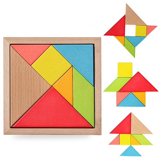 Đồ Chơi Gỗ Xếp Hình Trí Uẩn 7 Mảnh có 7 miếng gỗ lắp ráp được thành rất nhiều các hình khác nhau dựa trên sức sáng tạo của trẻ, hoặc lắp ráp thành hơn 500 hình sinh động.