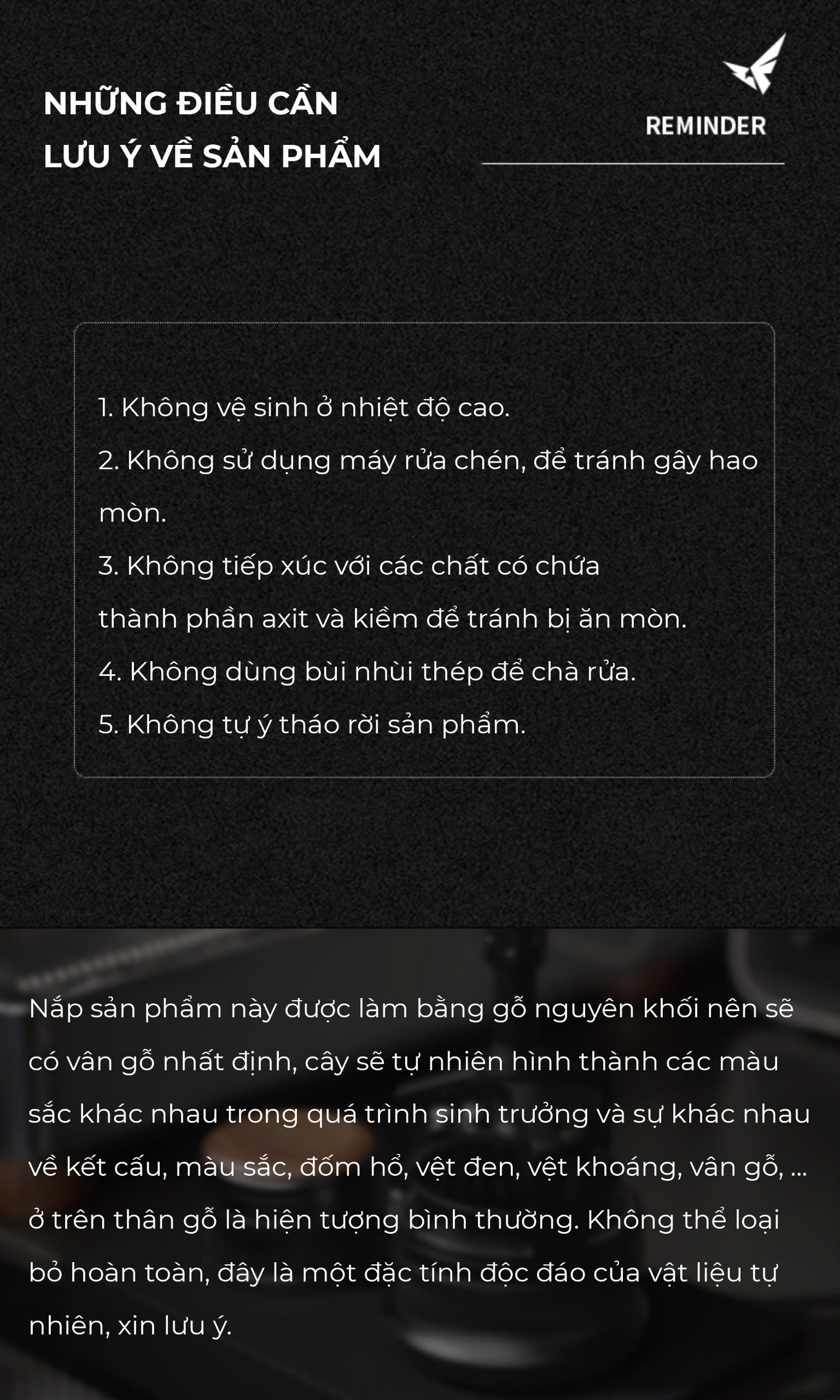 ️ Thiết kế nắp gỗ óc chó cao cấp, sang trọng và bền bỉ.