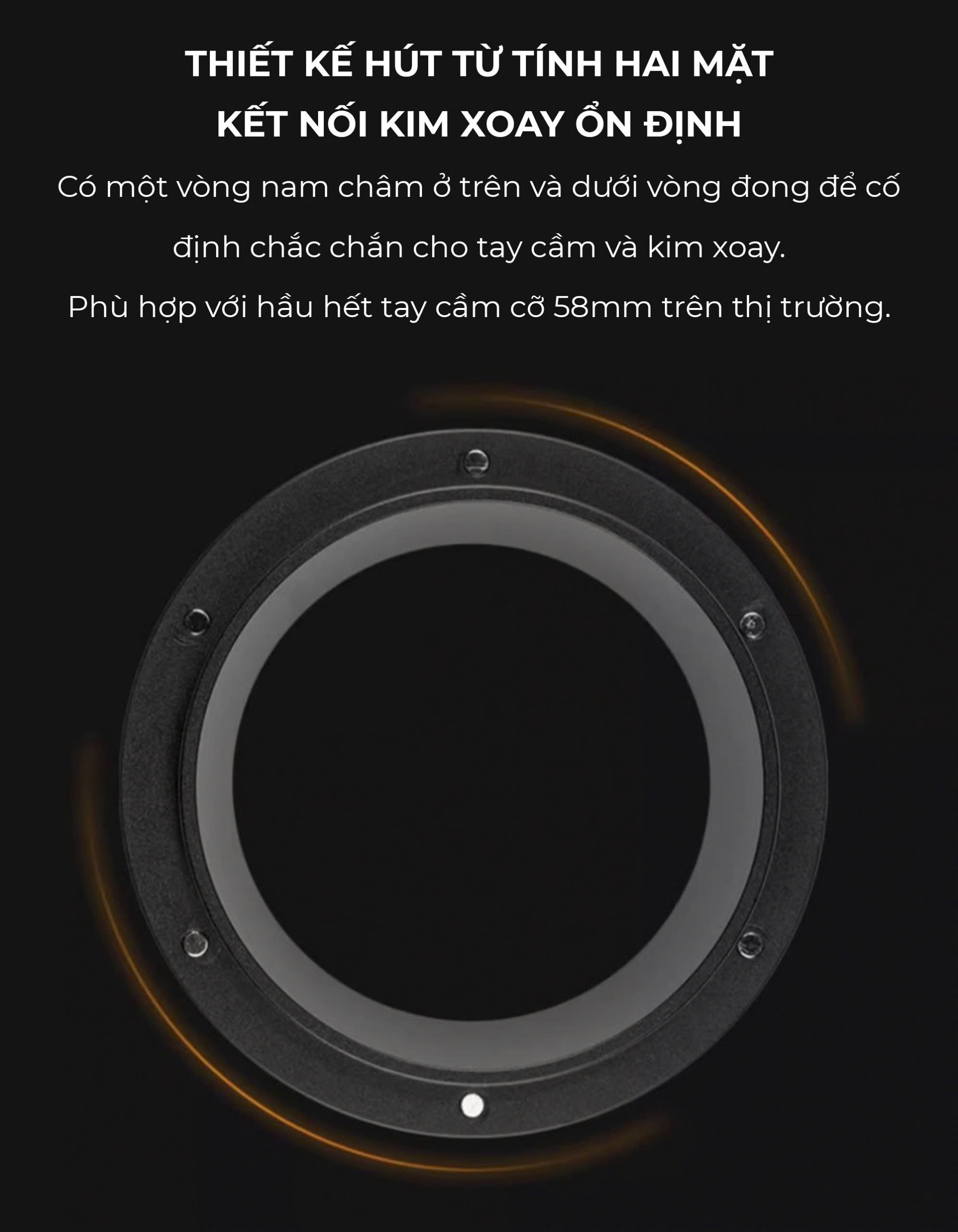 ️ Đường kính 58.5mm, khớp hoàn hảo với giỏ lọc espresso.