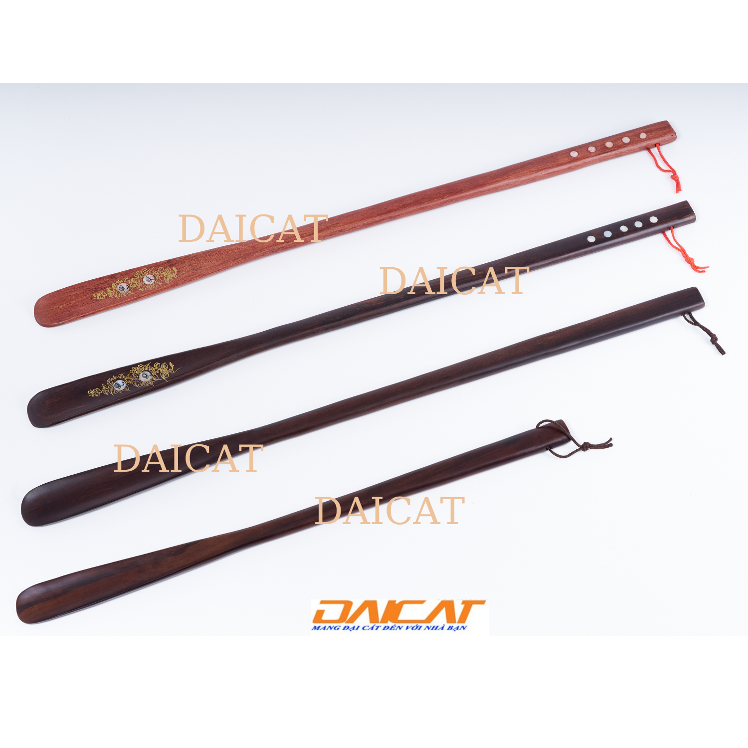 Mua tại TiktokCombo Hai Cây xỏ giầy gỗ khảm hoa văn- dây giưa 70cm- mầu nâu