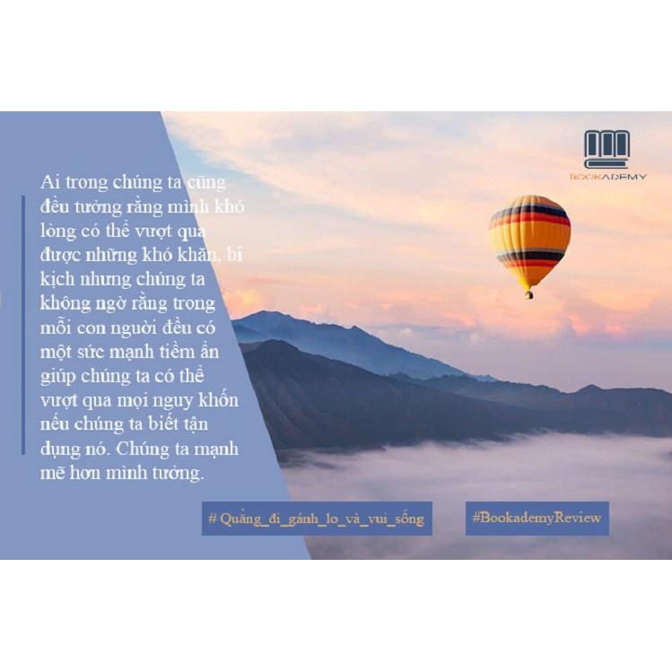 - QUẲNG GÁNH LO ĐI VÀ VUI SỐNG Bất kỳ ai đang sống đều sẽ có những lo lắng thường trực về học hành, công việc, những hoá đơn, chuyện nhà cửa, Cuộc sống không dễ dàng giải thoát bạn khỏi căng thẳng, ngược lại, nếu quá lo lắng, bạn có thể mắc bệnh trầm cảm. Quẳng Gánh Lo Đi Và Vui Sống khuyên bạn hãy khóa chặt dĩ vãng và tương lai lại để sống trong cái phòng kín mít của ngày hôm nay. Mọi vấn đề đều có thể được giải quyết, chỉ cần bạn bình tĩnh và xác định đúng hành động cần làm vào đúng thời điểm. Nói thì có vẻ dễ nhưng những vấn đề liên quan đến các trạng thái tinh thần chẳng bao giờ dễ giải quyết. Chấm dứt lo lắng là điều không thể nhưng bớt đi sự lo lắng thì có thể, chỉ cần bạn đủ quyết tâm. Quẳng Gánh Lo Đi Và Vui Sống khuyên bạn những cách để giảm thiểu lo lắng rất đơn giản như chia sẻ nó với người khác, tìm cách giải quyết vấn đề, quên tất cả những điều lo lắng nằm ngoài tầm tay, Cố gắng thực tập điều này hàng ngày và trong cuộc sống chắc hẳn bạn sẽ thành công, có thể, không được như bạn muốn, nhưng chỉ cần bớt đi một chút phiền muộn thì cuộc sống của bạn đã có thêm một niềm vui. Nhờ các phương pháp của Dale Carnegie, hàng triệu người đọc đã xây dựng được thái độ sống tích cực, an tâm cảm nhận hạnh phúc và mãi mãi loại bỏ thói quen lo lắng: Hãy đóng chặt những cánh cửa sắt dẫn đến quá khứ và tương lai. Chỉ sống trong những vách ngăn của hiện tại Nhìn nhận những mặt tích cực của cuộc sống Khi làm việc đến quên mình, ta cũng quên đi mọi lo lắng