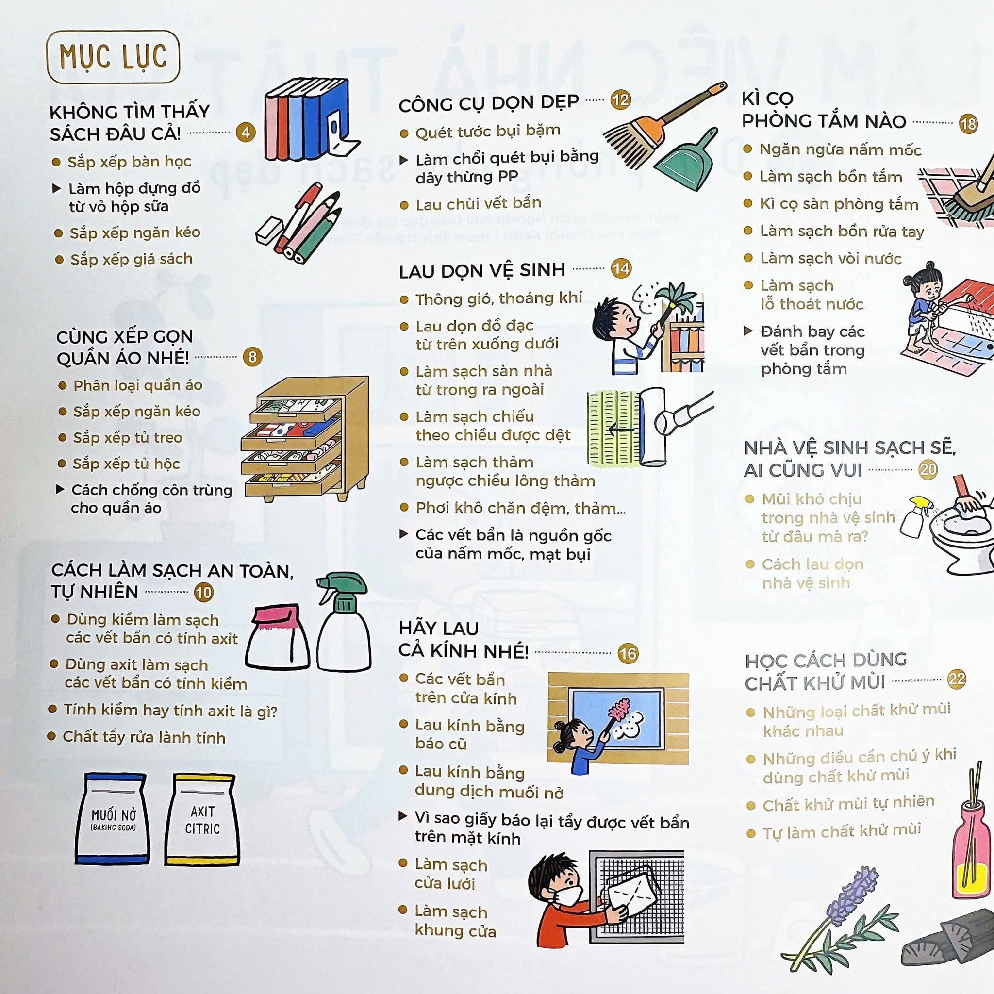 Với các minh hoạ chi tiết và lời giải thích đơn giản dễ hiểu, bộ sách sẽ giúp độc giả nhỏ tuổi nắm chắc các kĩ năng làm việc nhà cơ bản. Sắp xếp phòng
