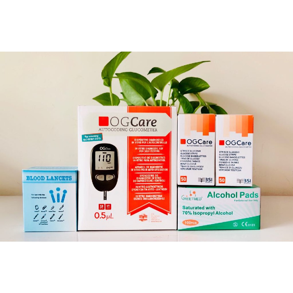 Combo Máy đo đường huyết OGCARE tặng kèm 100 Que+100 Kim lấy máu và 100 cồn sát khuẩn