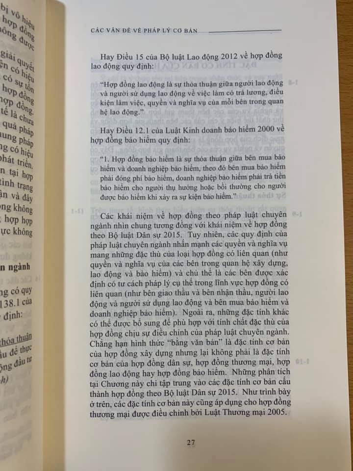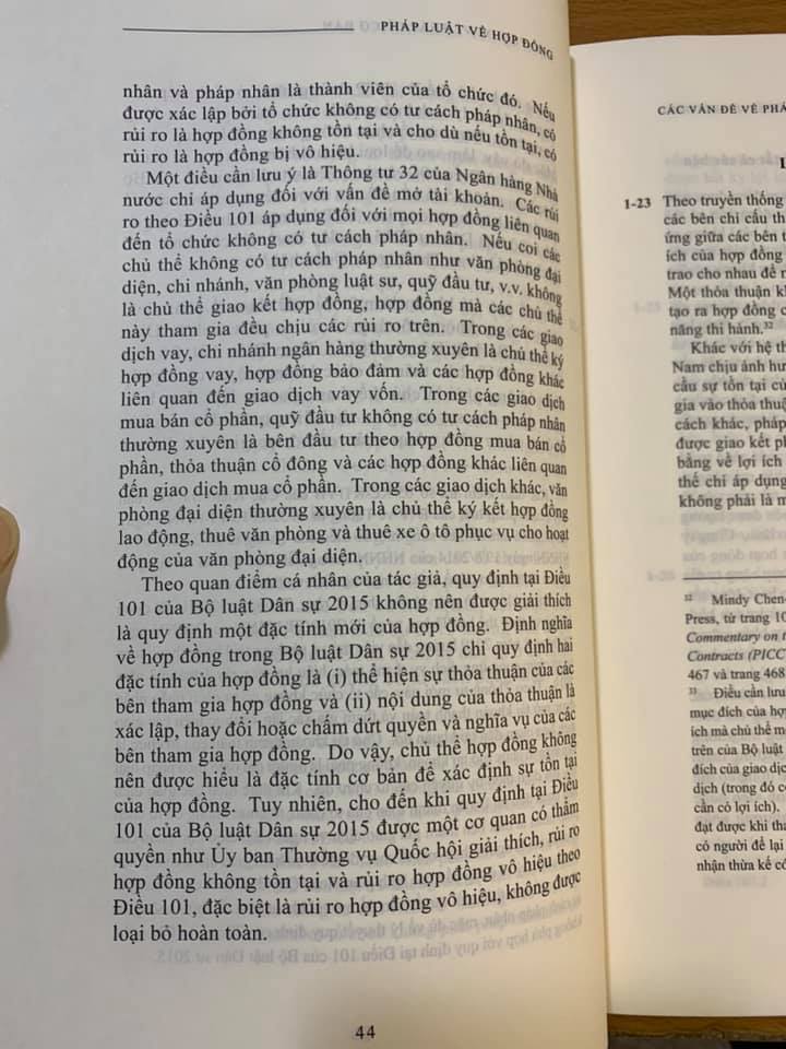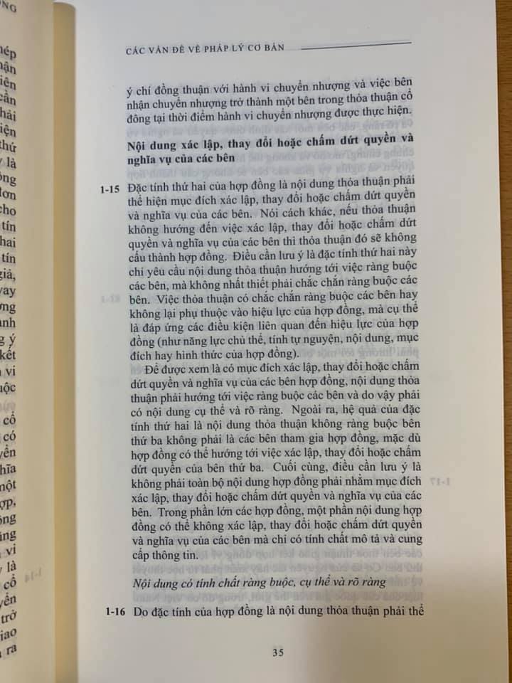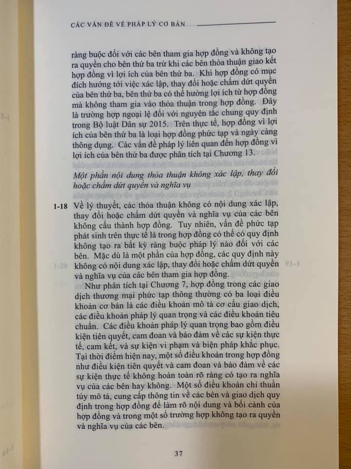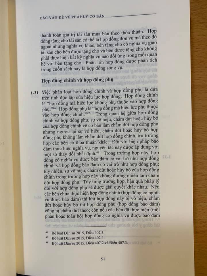 - Pháp Luật Về Hợp Đồng Các Vấn Đề Pháp Lý Cơ Bản (tái bản lần 1, 2024) LS. Trương Nhật Quang Năm xuất bản 2024 Phiên bản 2st Edition Loại bìa Bìa mềm Số trang 900 ISBN: 9786044026060 Nhà phát hành : NXB Dân Trí Giá bìa: 800.000 đ Nội dung sách: Đây là cuốn sách đầy đủ nhất liên quan đến pháp luật về hợp đồng. Trải dài trong gần 900 trang, cuốn sách phân tích các vấn đề liên quan đến (i) giao kết hợp đồng; (ii) hiệu lực hợp đồng; (iii) nội dung hợp đồng; (iv) vi phạm hợp đồng và biện pháp khắc phục; (v) miễn trừ trách nhiệm; (vi) chuyển giao quyền và nghĩa vụ; (vii) quyền của bên thứ ba trong hợp đồng vì lợi ích của bên thứ ba; và (viii) nguyên tắc chọn pháp luật áp dụng và cơ quan giải quyết tranh chấp hợp đồng. Đây là cuốn sách duy nhất trình bày các vấn đề liên quan đến pháp luật về hợp đồng cả từ góc độ lý thuyết và thực tế. Ngoài việc phân tích các quy định của các văn bản pháp luật, cuốn sách cũng phân tích các án lệ và bản án. Đây là cuốn sách giúp các luật sư hành nghề có thể tham khảo khi tư vấn trong các giao dịch thương mại có yếu tố nước ngoài. Cuốn sách tập trung phân tích phạm vi mà các bên có thể thỏa thuận trong hợp đồng để phân bố rủi ro. Đây là cuốn sách duy nhất có hệ thống tra cứu đầy đủ giúp người đọc tiện tra cứu. Cuốn sách có (i) bảng tra cứu từ khóa; (ii) bảng tra cứu án lệ, bản án và quyết định; và (iii) danh sách các tài liệu trích dẫn.