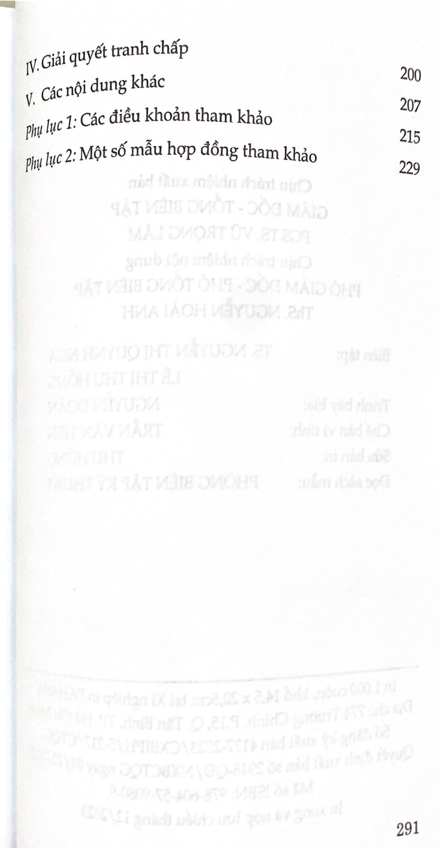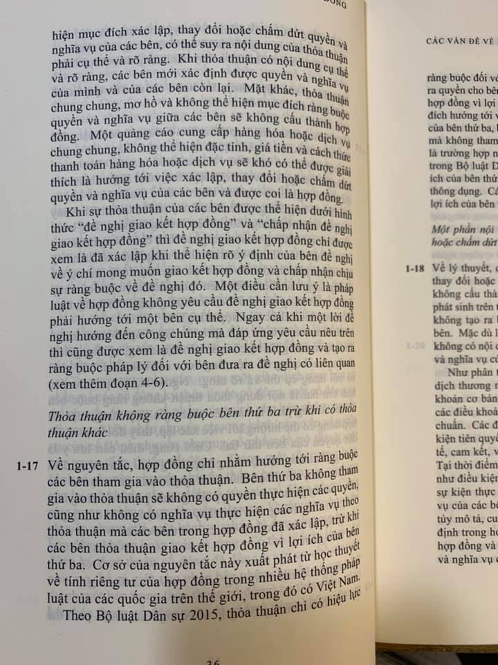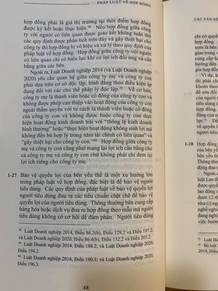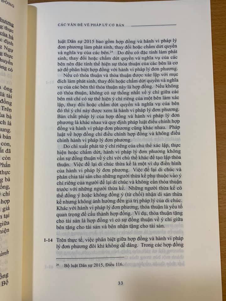 - Pháp Luật Về Hợp Đồng Các Vấn Đề Pháp Lý Cơ Bản (tái bản lần 1, 2024) LS. Trương Nhật Quang Năm xuất bản 2024 Phiên bản 2st Edition Loại bìa Bìa mềm Số trang 900 ISBN: 9786044026060 Nhà phát hành : NXB Dân Trí Giá bìa: 800.000 đ Nội dung sách: Đây là cuốn sách đầy đủ nhất liên quan đến pháp luật về hợp đồng. Trải dài trong gần 900 trang, cuốn sách phân tích các vấn đề liên quan đến (i) giao kết hợp đồng; (ii) hiệu lực hợp đồng; (iii) nội dung hợp đồng; (iv) vi phạm hợp đồng và biện pháp khắc phục; (v) miễn trừ trách nhiệm; (vi) chuyển giao quyền và nghĩa vụ; (vii) quyền của bên thứ ba trong hợp đồng vì lợi ích của bên thứ ba; và (viii) nguyên tắc chọn pháp luật áp dụng và cơ quan giải quyết tranh chấp hợp đồng. Đây là cuốn sách duy nhất trình bày các vấn đề liên quan đến pháp luật về hợp đồng cả từ góc độ lý thuyết và thực tế. Ngoài việc phân tích các quy định của các văn bản pháp luật, cuốn sách cũng phân tích các án lệ và bản án. Đây là cuốn sách giúp các luật sư hành nghề có thể tham khảo khi tư vấn trong các giao dịch thương mại có yếu tố nước ngoài. Cuốn sách tập trung phân tích phạm vi mà các bên có thể thỏa thuận trong hợp đồng để phân bố rủi ro. Đây là cuốn sách duy nhất có hệ thống tra cứu đầy đủ giúp người đọc tiện tra cứu. Cuốn sách có (i) bảng tra cứu từ khóa; (ii) bảng tra cứu án lệ, bản án và quyết định; và (iii) danh sách các tài liệu trích dẫn.