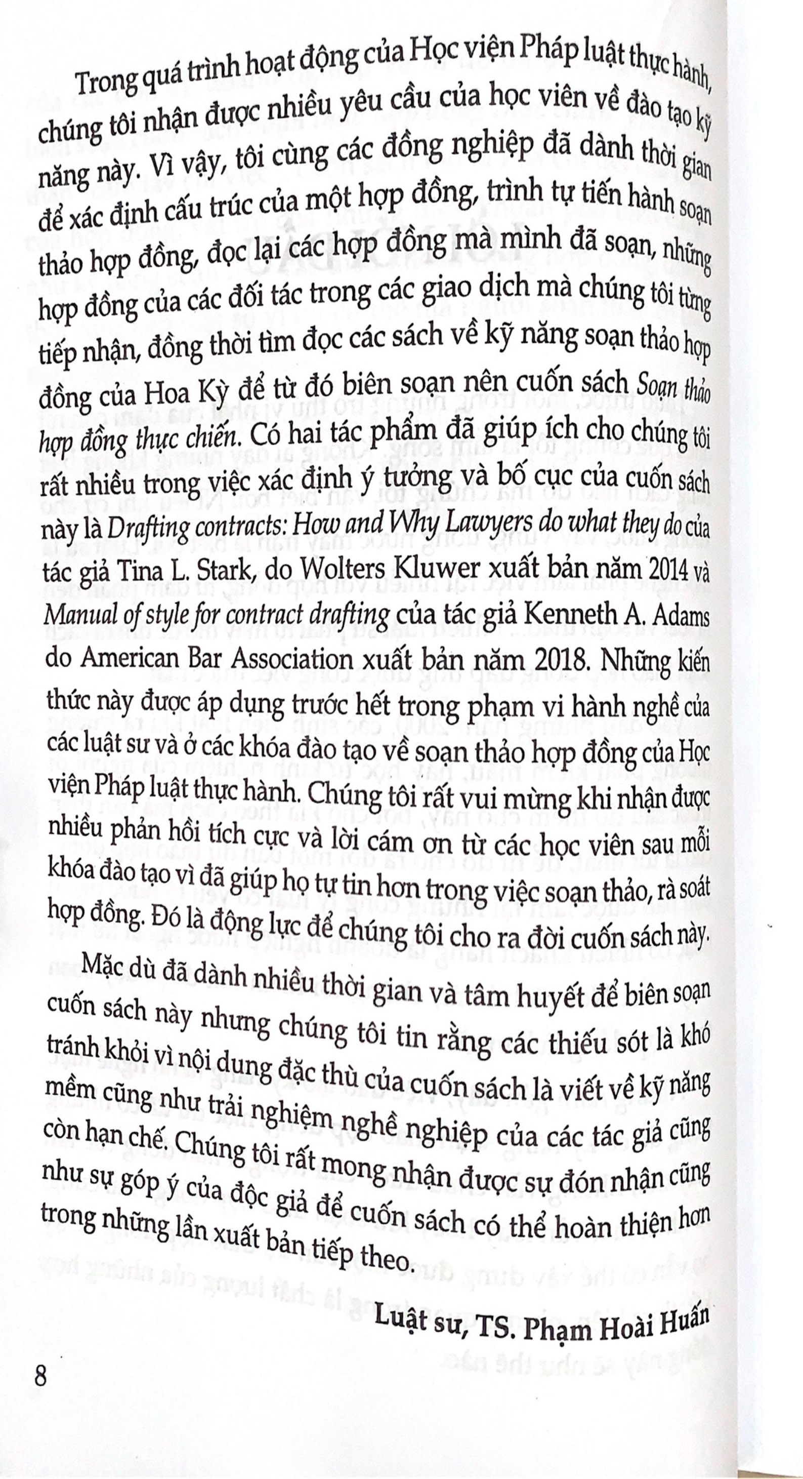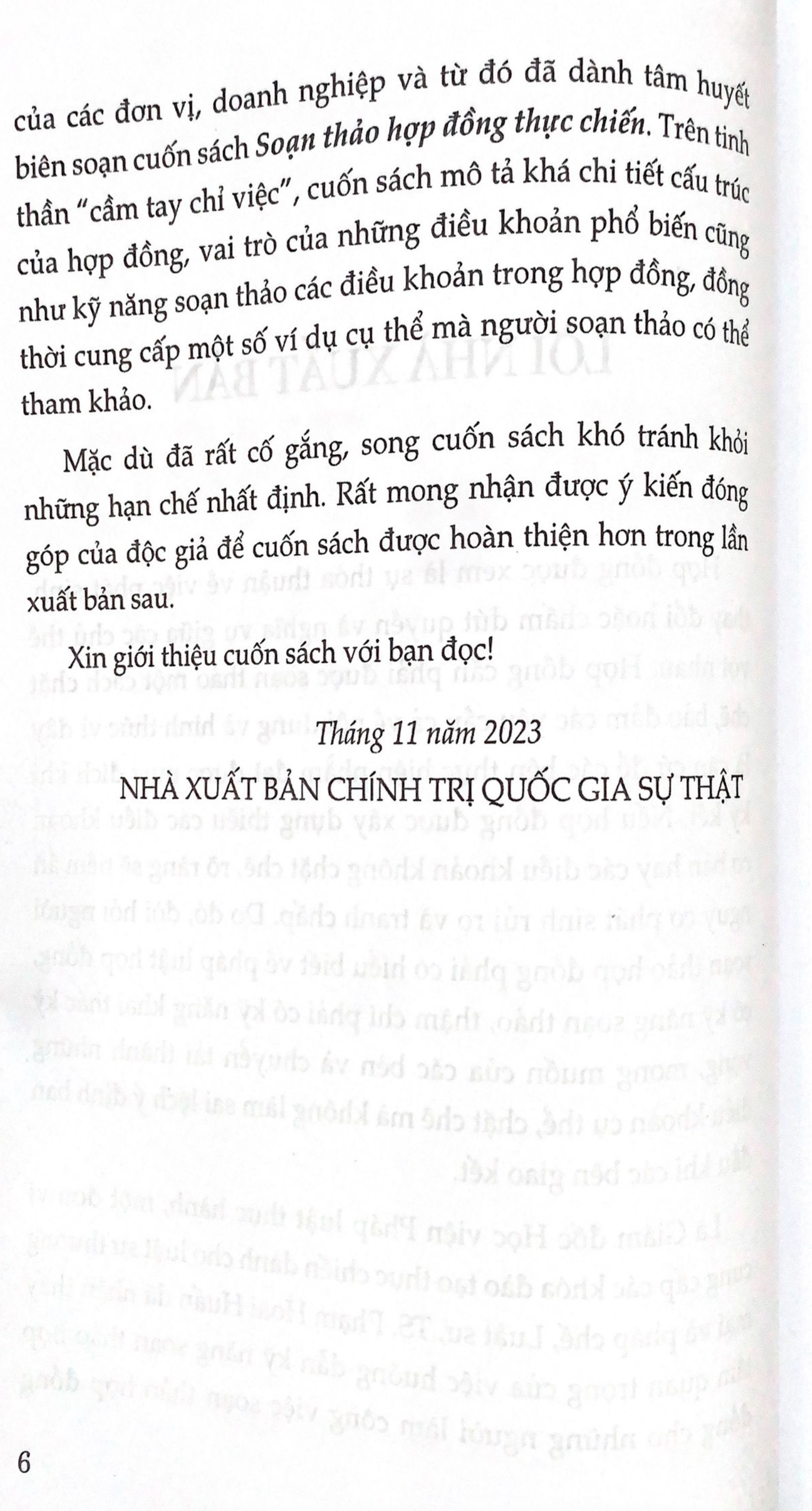 - Soạn thảo hợp đồng thực chiến Tác giả: LS.TS Phạm Hoài Huấn và ThS. Thân Thị Kim Nga Nhà xuất bản: Chính Trị Quốc Gia Sự Thật Khổ sách: 14.5x20.5cm Năm xuất bản: 12/2023 Công ty phát hành: NXB Chính Trị Quốc Gia Sự Thật Giá bìa: 115.000 đ Số trang: 292 trang Hình thức bìa: Bìa mềm
