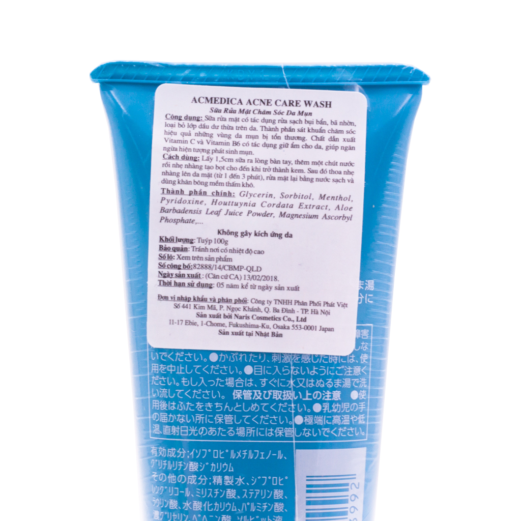 Combo Sữa Rửa Mặt Ngăn Ngừa Mụn, Sạch Nhờn, Hỗ Trợ Trị Thâm Nhật Bản Naris Cosmetic Acmedica Acne Care Wash (100g) + Bông Bọt Biển Rửa Mặt Cao Cấp Hàn Quốc Mira (6 miếng/bịch) – Hàng chính hãng