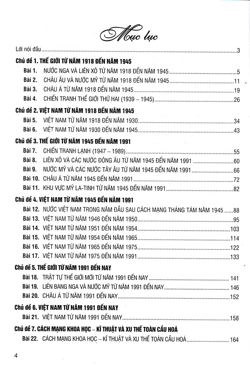 Cuốn sách được biên soạn bày theo từng chủ đề với các bài học lịch sử Trong mỗi bài có các phần: