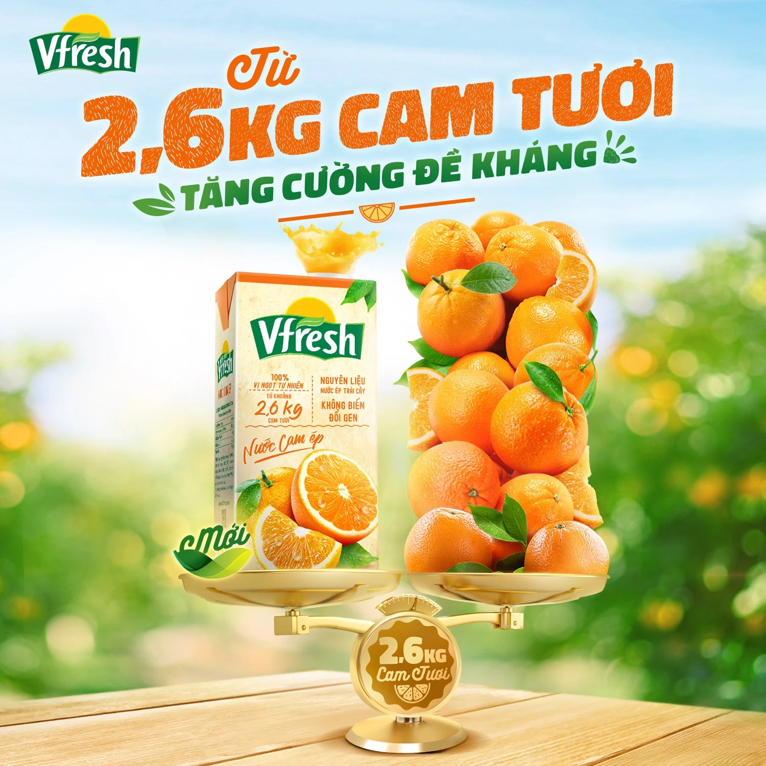 Nước trái cây Vfresh 100% được ép từ nguồn trái cây tươi ngon tự nhiên, hoàn toàn không chứa chất bảo quản, giữ trọn vị trái cây, giàu dưỡng chất, cho cơ thể khỏe mạnh và tràn đầy sức sống. Chăm sóc sức khỏe cho cả gia đình Thông tin sản phẩm    Xuất xứViệt NamDung tích1LThành phầnNước cam ép từ nước cam cô đặc (50%), nước, đường tinh luyện, chất ổn định (440), chất chống oxy hóaHướng dẫn bảo quảnBảo quản nơi khô ráo, thoáng mát, sau khi sử dụng, đậy kín và bảo quản trong tủ lạnh (6 - 8 độ C) và dùng hết trong vòng 3 ngàyHướng dẫn sử dụngDùng trực tiếp, lắc đều trước khi uống. Ngon hơn khi uống lạnh                       Nước cam Vfresh được sản xuất trên quy trình công nghệ hiện đại, đã qua quá trình kiểm định độ an toàn vệ sinh thực phẩm. Trong 1 lít nước cam được làm từ khoảng 1,3kg trái cam tươi, giàu vitamin C, hoàn toàn không chứa chất bảo quản và không sử dụng màu thực phẩm. Sản phẩm giúp tăng cường sức đề kháng, cho cơ thể khỏe mạnh mỗi ngày. Không chỉ vậy, Nước cam Vfresh còn có tác dụng giải nhiệt rất tốt, giúp tăng cường năng lượng cho cơ thể sau khi vận động và đem lại làn da mịn màng, tươi trẻ cho chị em phụ nữ. Nước cam Vfresh được thiết kế hộp tiện dụng, vỏ hộp làm bằng giấy tráng nhôm, bảo quản nước ép luôn giữ được hương vị tự nhiên thơm ngon, đem lại sự yên tâm cho người sử dụng.  MẪU BAO BÌ THAY ĐỔI THEO TỪNG ĐỢT NHẬP HÀNG.