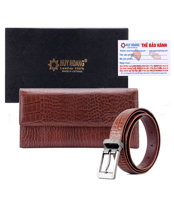 Bộ ví & thắt lưng nữ da bò Huy Hoàng màu nâu 3138-5112