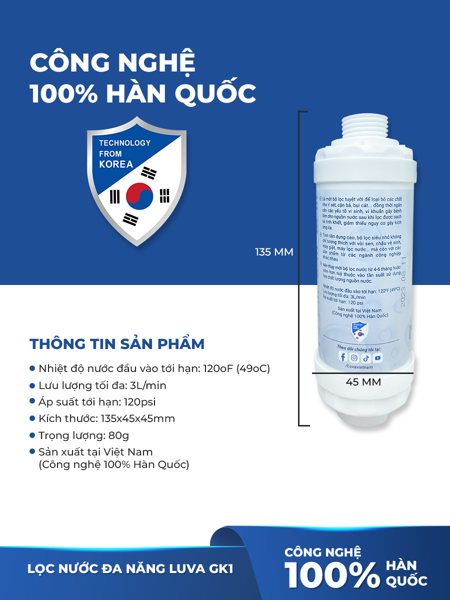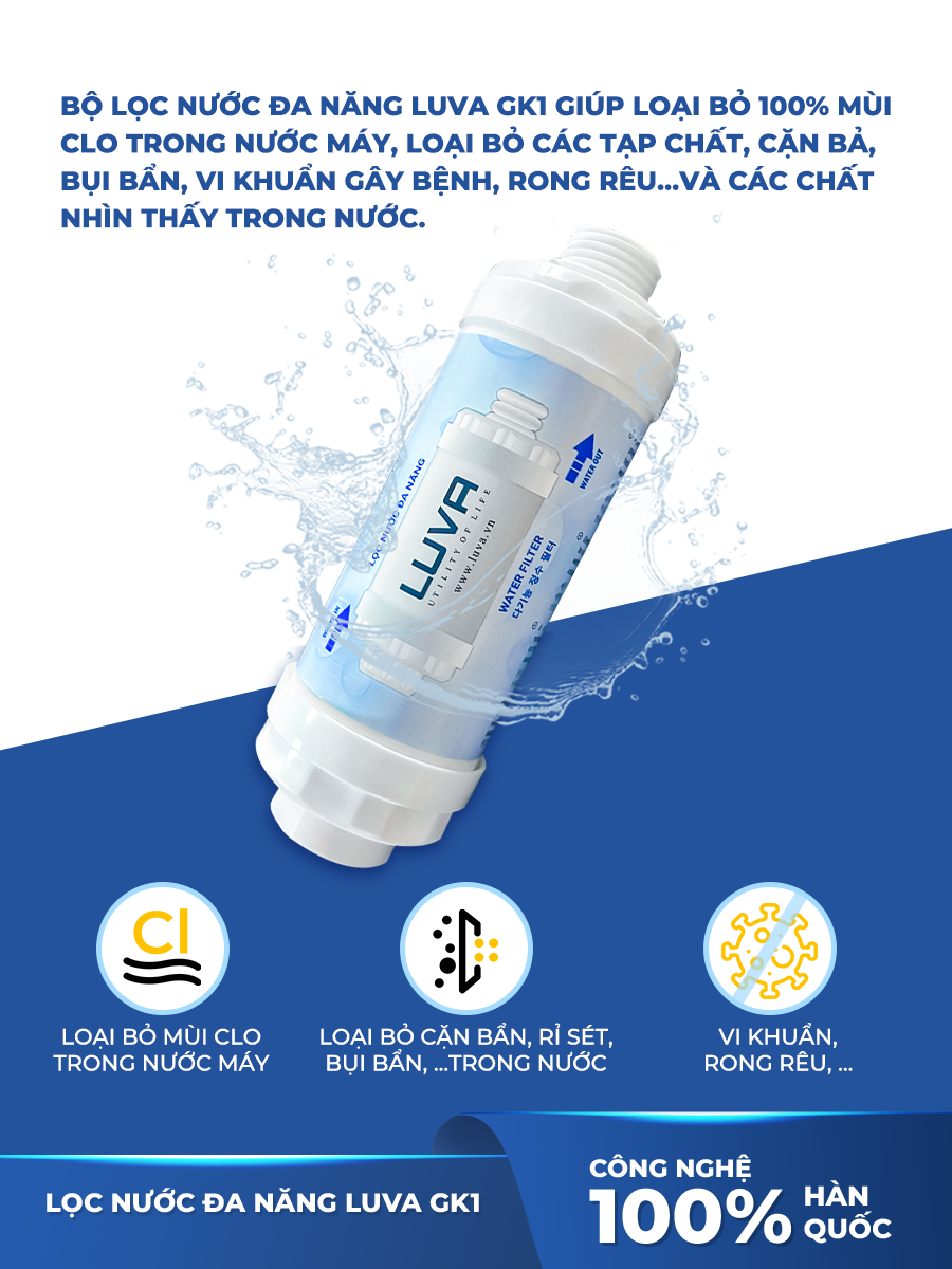 Bộ lọc nước đa năng Luva GK1 lọc vòi sen tắm, máy rửa bát, máy giặt, vòi rửa bát, bồn cầu