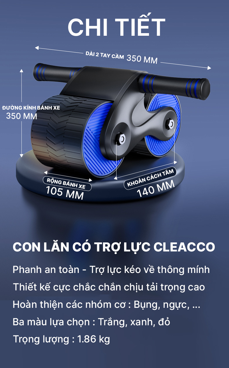 Mua tại TiktokCon Lăn Trợ Lực Bảo Hành 12 Tháng Con Lăn Tập Bụng Có Trợ Lực Thiết Kế Bánh Xe Rộng Êm Ái Chắc Chắn Cleacco Boro Sport Cấu tạo: Thiết kế phanh tự động, trơ lực kéo về tự động Cấu tạo cứng cáp chắc chắn chịu lực tải cao Chống tiếng ổn cực tốt Trọng lượng 1,9 kg Ưu điểm : Gọn gàng mang theo Giúp tập các bài về các nhóm cơ cực tốt _ Có trợ lực phù hợp cho người mới bắt đầu