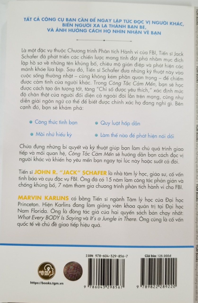 Là một đặc vụ thuộc chương trình phân tích hành vi của FBI, tiến sĩ Jack Schafel đã phát triển các chiến lược mang tính đột phá nhằm mục đích lập hồ sơ về những tên khủng bố, chiêu mộ gián điệp và phát hiện các mánh khóe lừa bịp. Sau đó, Tiến sĩ Schafer đưa những kỹ thuật này vào cuộc sống thường nhật- cũng không kém phần quan trọng- để chiếm được cảm tình của người khác. Trong công tắc cảm mến, bạn sẽ học được cách tạo ấn tượng tốt, tăng" Chỉ số được yêu thích", xác định mức độ chân thật của người đối diện cả ngoài đời lẫn trên mạng, cũng như diễn giải ngôn ngữ cơ thể để biết được chính xác hoc đang nghĩ gì. Bên cạnh đó bạn sẽ khám phá: