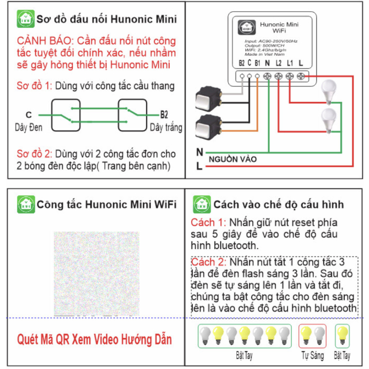 Hướng dẫn đấu nối, cài đặt công tắc Hunonic Mini thế hệ mới