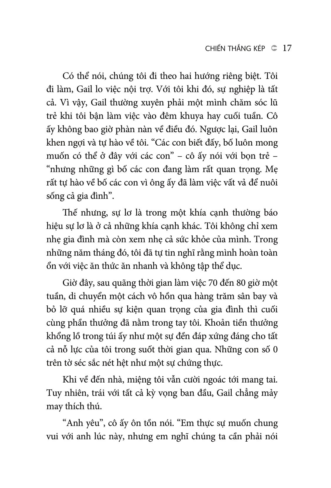 Trong sách “Công việc thành công - Cuộc đời như ý” (Win at Work và Succeed at Life, tác giả bán chạy nhất của New York Times - Michael Hyatt và Giám đốc điều hành - Megan Hyatt Miller) đã vạch trần những người nổi tiếng ủng hộ “làm việc quá sức" và chỉ cho bạn cách đạt được thành công trong công việc mà không phải hy sinh cuộc sống cá nhân của mình - một khái niệm được gọi là “Chiến thắng kép”.
