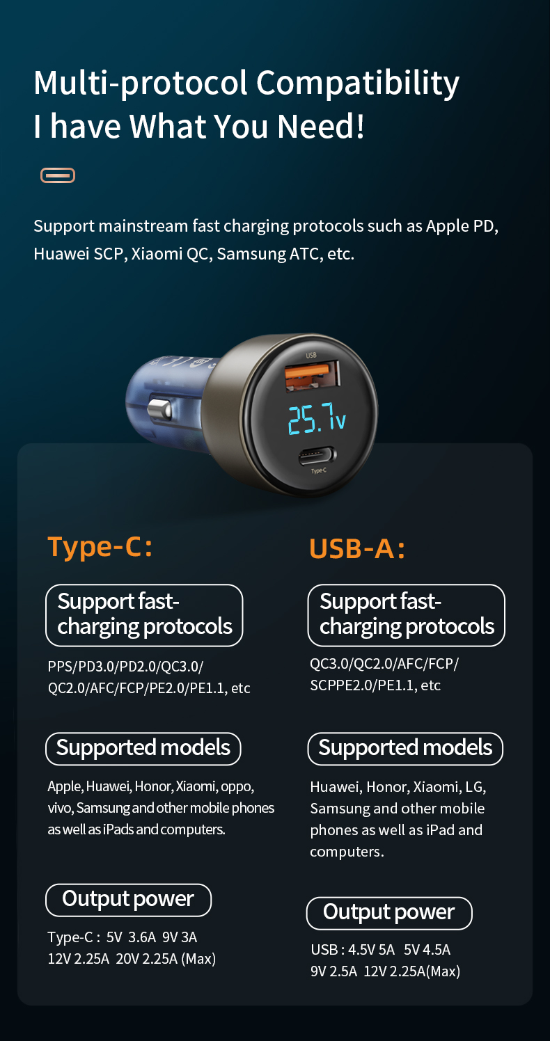 Sạc nhanh đa năng xe hơi Baseus 45W Cổng USB + USB-C PD Why buy??? - Sạc nhanh đa năng xe hơi Baseus 45W Cổng USB + USB-C PD - Tương thích với nhiều dòng máy