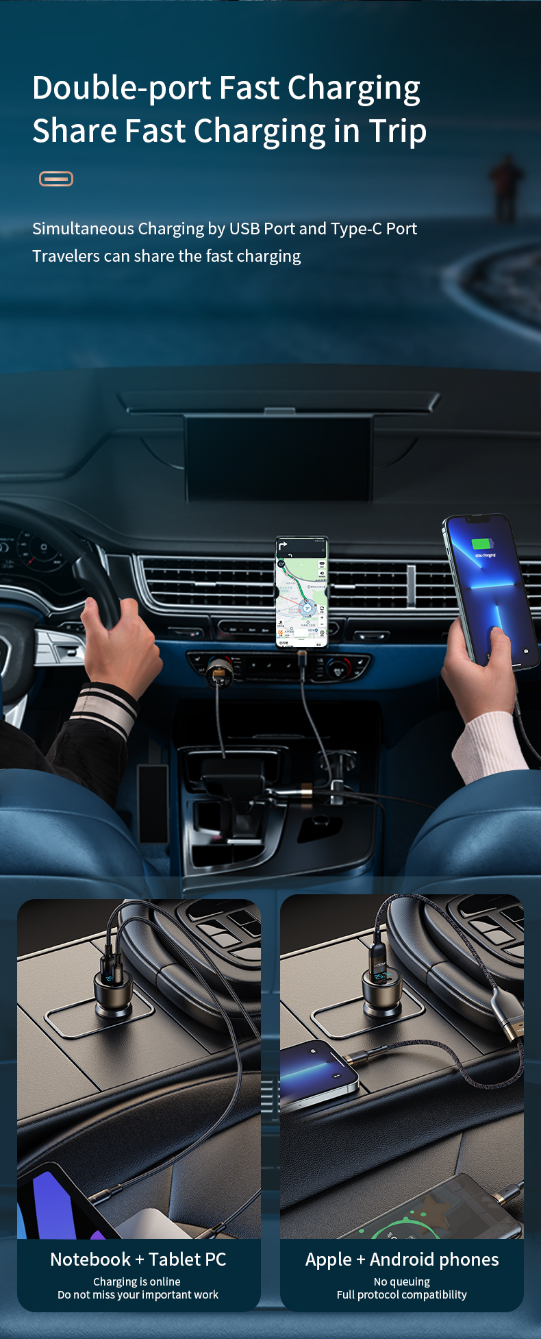 1. Professional car charger is designed with advanced technology that offers you and your devices the best protection. Our safety system protects your devices from short circuit, overvoltage and other risks. Just rely on UGREEN