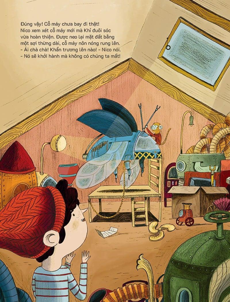 Tối nay, khi Nico đến Xưởng Máy, Khỉ đuôi sóc đã làm xong cỗ máy mới để sẵn sàng cất cánh.
