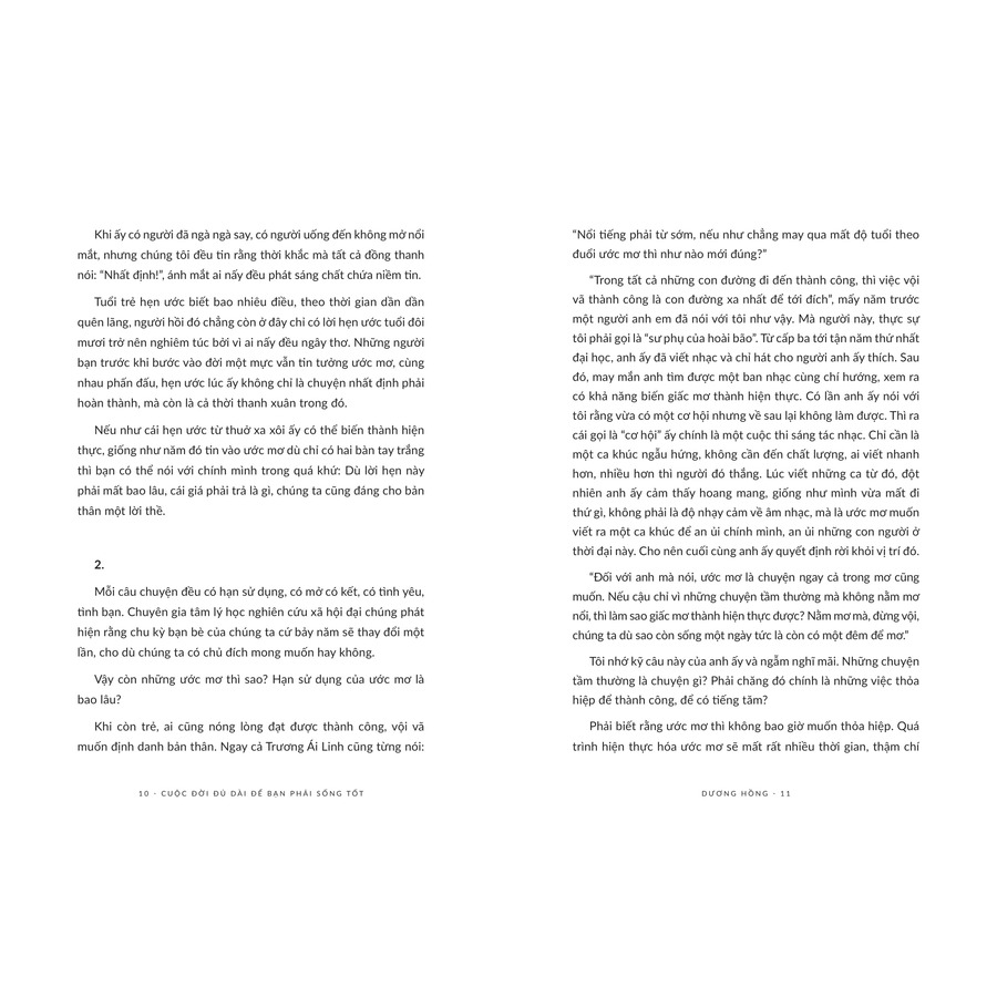 Cuộc đời đủ dài để bạn phải sống tốt là những câu chuyện về cuộc đời của những người trẻ được viết nên bởi khát vọng, ước mơ và vô vàn trắc trở. Cuộc sống này không chỉ có niềm vui tận hưởng thành công, mà còn có cả quá trình tận hưởng sự nỗ lực. Ngay cả khi những gì bạn mới chỉ nhìn thấy trước mắt là chông gai, hãy nhớ: Điều gọi là tuyệt vọng thật ra chỉ là thứ buộc bạn phải đi đúng đường mà thôi. Dòng đời ngày càng hối hả, chậm lại mới có thể đi xa hơn.