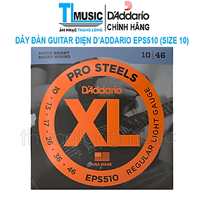 D'Addario EPS510 ProSteels Electric Guitar Strings, Regular Light, 10-46 D'Addario XL ProSteels sử dụng hợp kim thép không gỉ độc quyền cho âm sắc siêu sáng mà không bị overtones chát tai. Tạo được âm