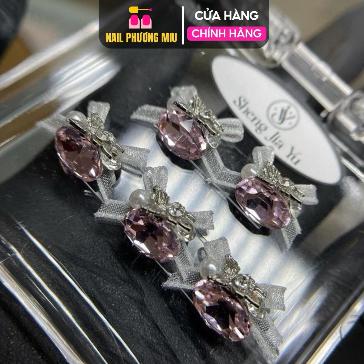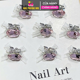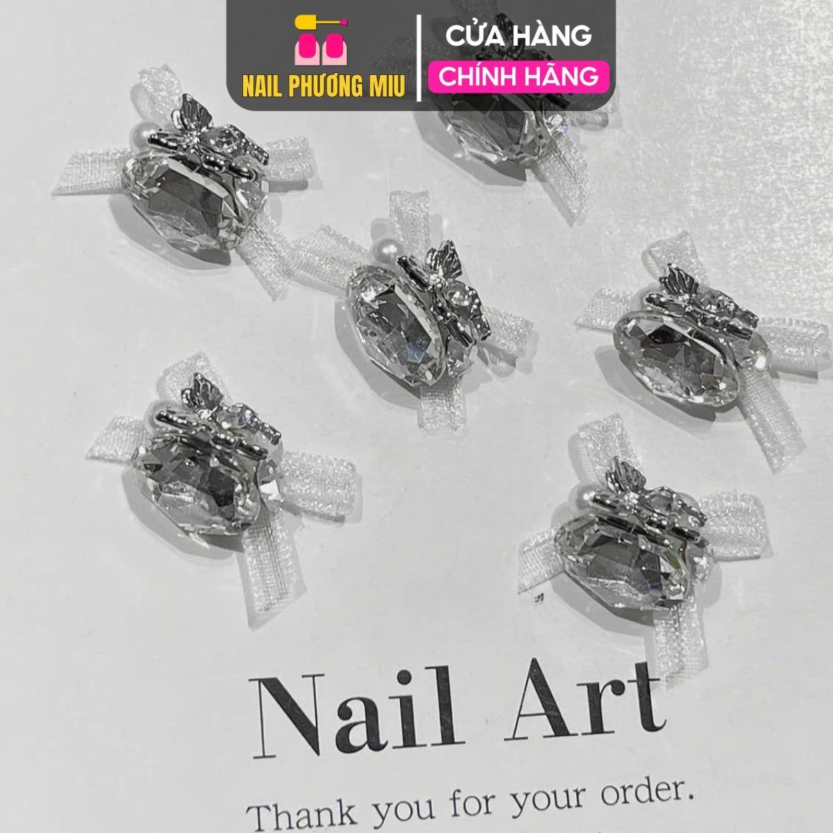 ✨Đá Khối Mix Charm Nơ Voan Siêu Sáng Nhiều Màu Nghệ Thuật Hình Trứng Đá Viên Khoan Đa Mặt Làm Nail Nữ Women
