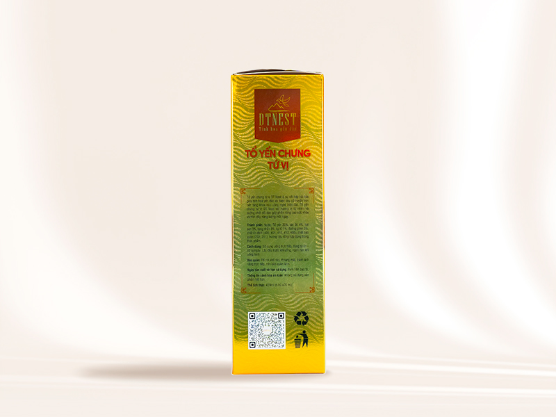 - Tổ yến chưng đường phèn tứ vị là một món ăn bổ dưỡng thường được sử dụng trong hoàng cung thời xưa vô cùng tốt cho sức khỏe của người dùng, nhiều nghiên cứu và thử nghiệm thực tế đã chứng minh những công dụng tuyệt vời của món ăn này. Tổ yến chưng đường phèn tứ vị. - DT NEST mang lại hương vị thanh mát, mới lạ cho người dùng. THÀNH PHẦN: 30% tổ yến, đường phèn, kỷ tử, long nhãn, táo đỏ, hạt sen, tảo biển, nước, hương yến