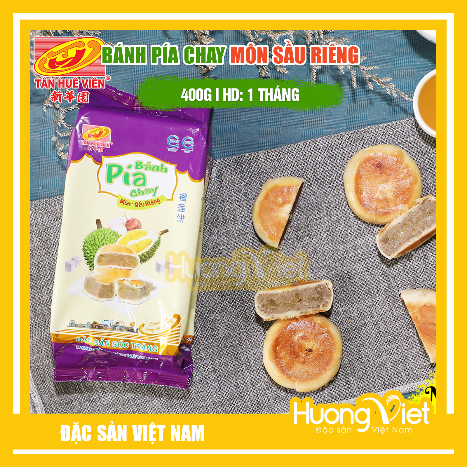 ✨Đặc Sản Sóc Trăng - Bánh Pía Chay Môn Sầu Riêng Tân Huê Viên 400G, Bánh Pía Không Trứng Tân Huê Viên Sóc Trăng
