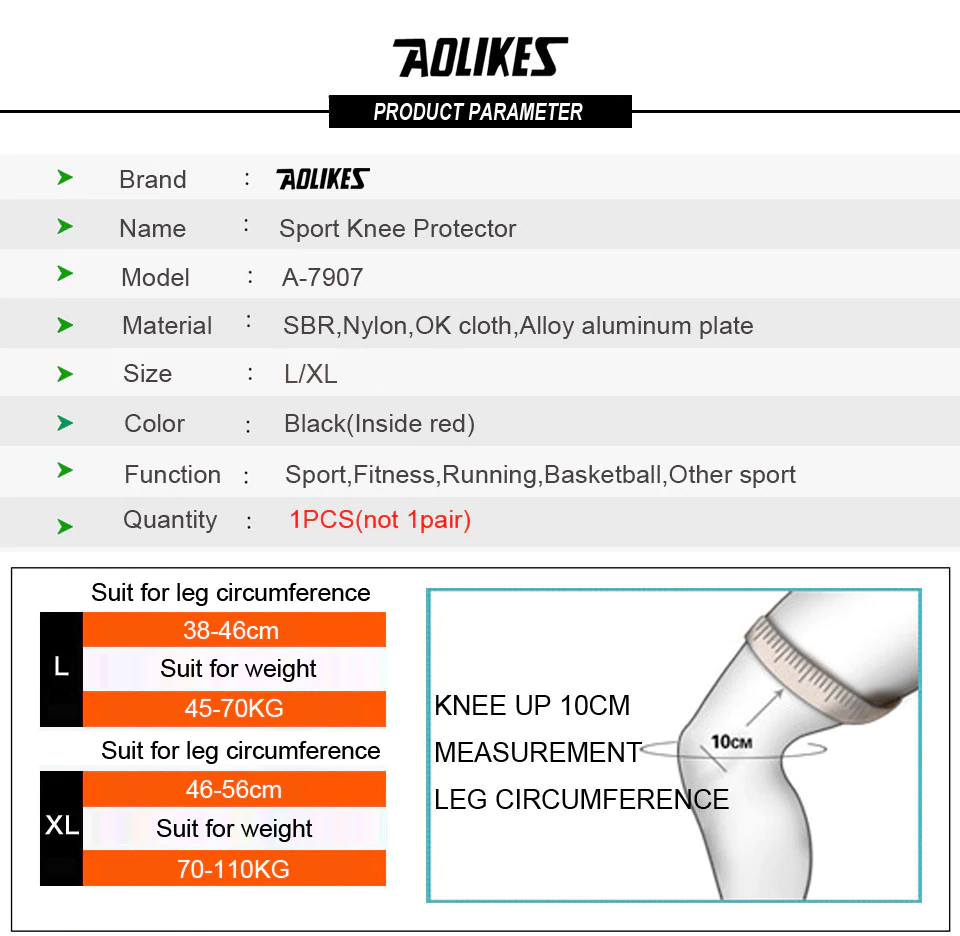 ✨Đai bảo vệ đầu gối AOLIKES A-7907 thanh hợp kim nhôm trợ lực Sport Knee Protector