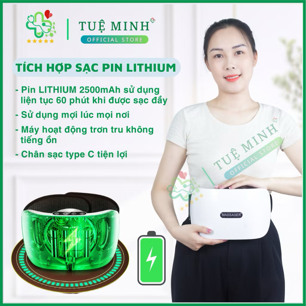 Đai Massage Giảm Mỡ Bụng Tích Hợp Nhiệt Hồng Ngoại, Rung Bi Quay – Làm Ấm Tử Cung, Tan Mỡ Bụng