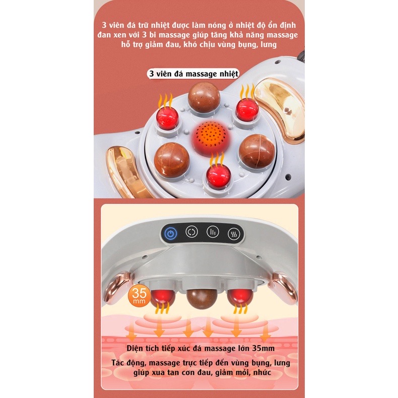 Sản phẩm được sử dụng ở rất nhiều vị trí, vùng trên cơ thể như: bụng, lưng, vai, chân,... giúp hỗ trợ giảm đau mỏi, massage sâu kèm massage nhiệt mang lại cảm giác thoải mái, dễ chịu cho người dùng.