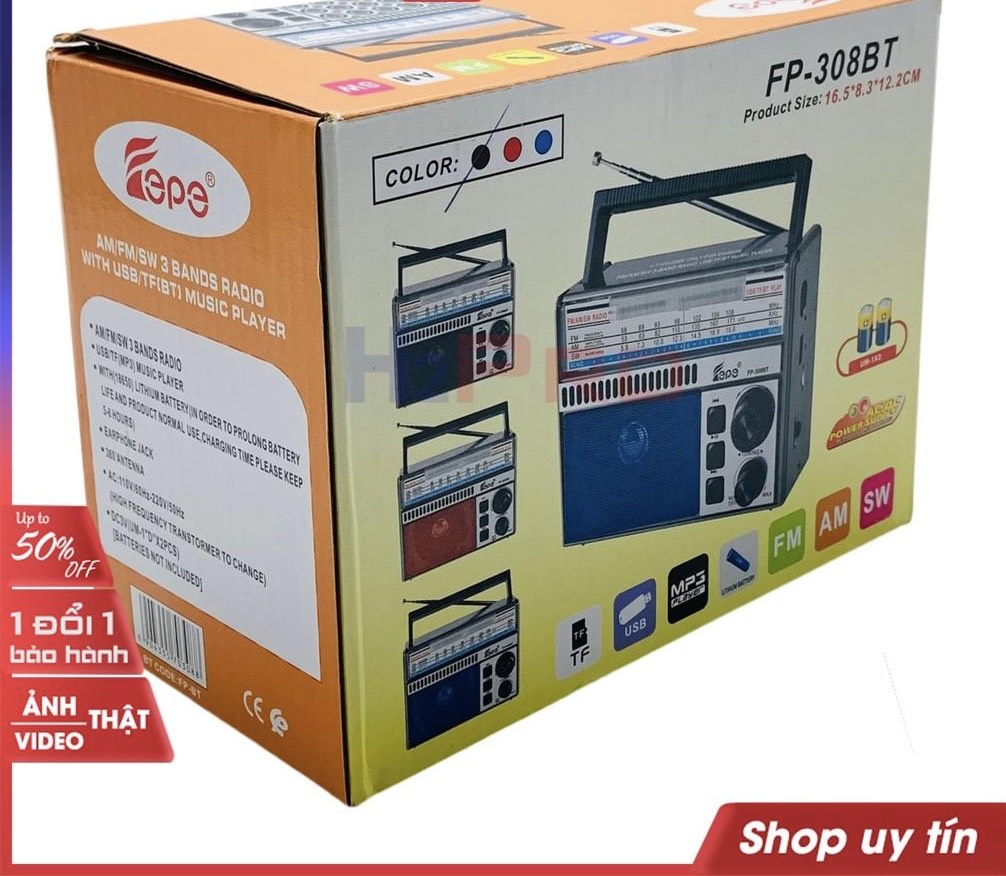 - 3 Băng FM , AM , SW - Bluetooth 5.0 , Phát nhạc từ USB hoặc thẻ nhớ TF Card - Sử dụng điện trực tiếp 220V hoặc pin sạc dung lượng lớn kèm