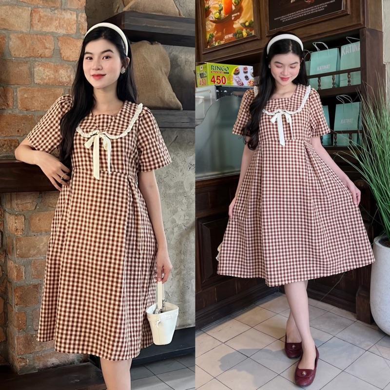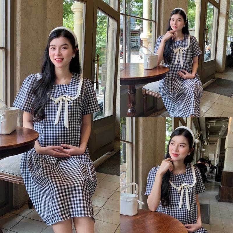 ÔNG TIN SẢN PHẨM: Đầm bầu karo cổ thuỷ thủ phom babydol năng động, trẻ trung. Chất vải cotton hàn nhẹ mát, thấm hút mồ hôi. Điểm nhấn tay phồng nhẹ dễ thương khi mặc