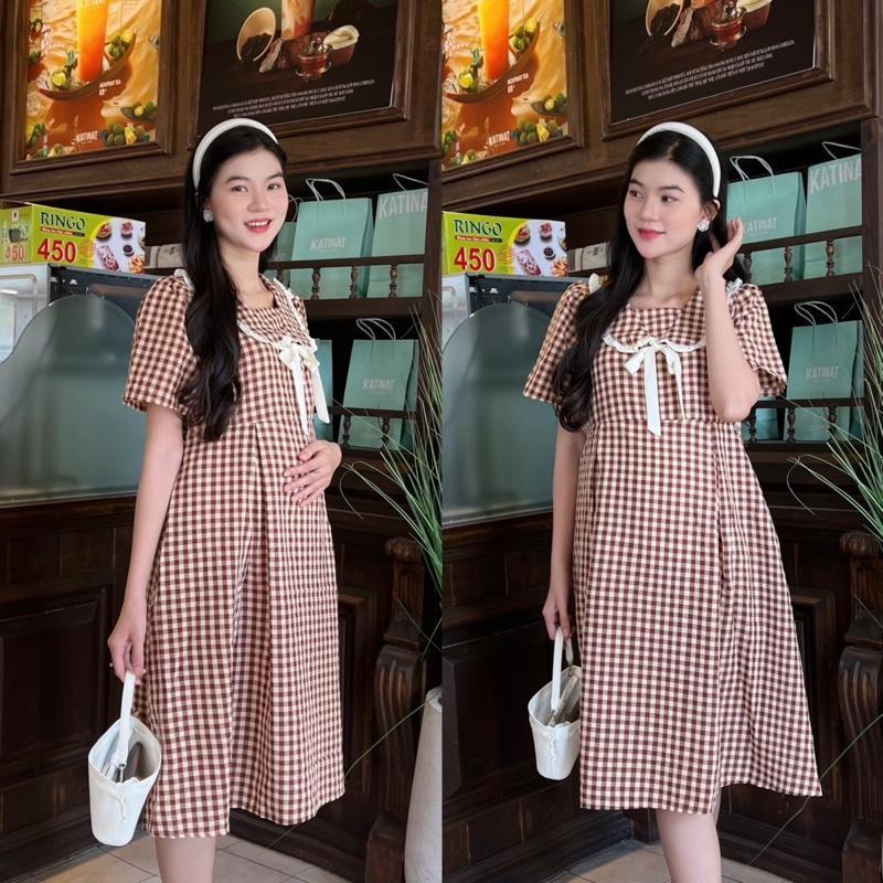 ÔNG TIN SẢN PHẨM: Mẫu đầm bầu karo dáng suông, thiết kế cổ sen nhún bèo, phối thắt nơ, dễ thương, năng động. Chất vải kate Hàn, mặc nhẹ mát không nóng bí, thấm hút