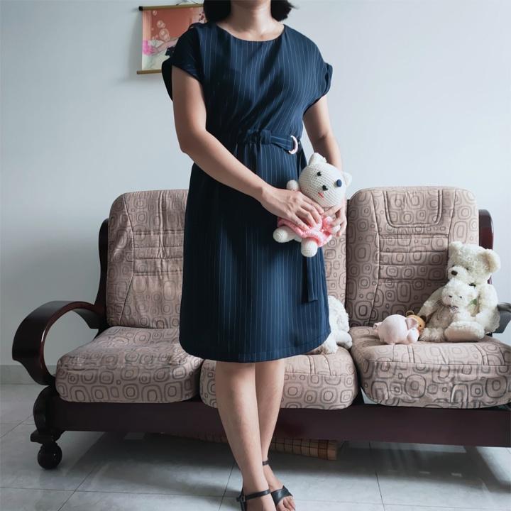 Đầm suông có túi kèm dây lưng với thiết kế tay con lạ