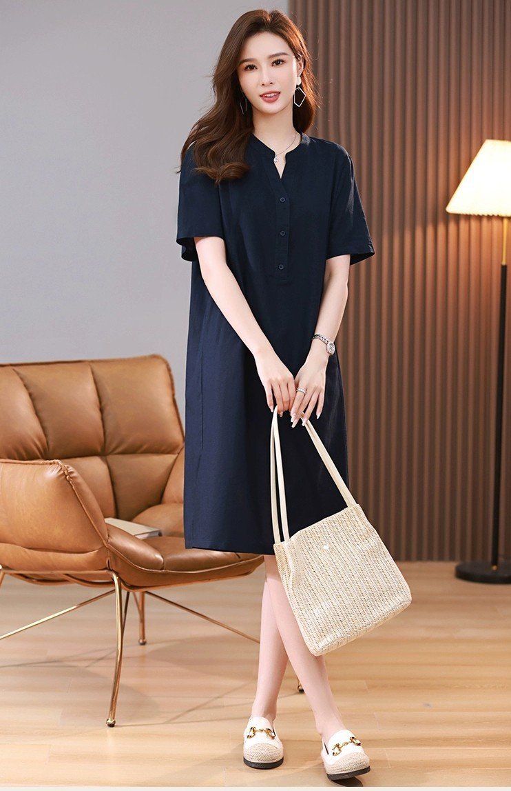 ღ THÔNG TIN SẢN PHẨM: Tên sản phẩm: Đầm sơ mi xanh navy Chất liệu: Chất gân ý Chi tiết sản phẩm: không lót, không túi Thông số size: S, M, L,