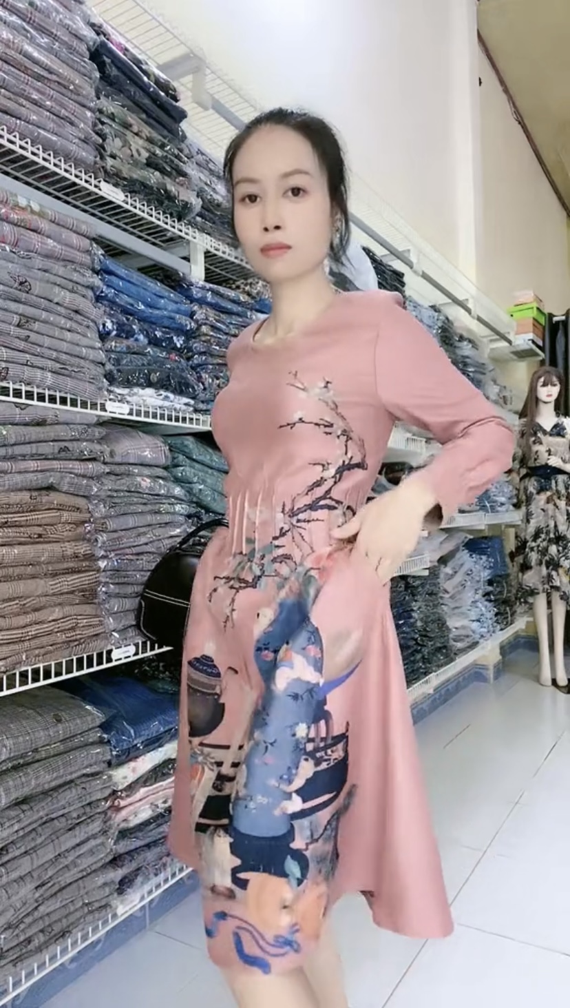 Chất liệu: vải voan gân tằm mịn Màu sắc: có 2 màu HỒNG + XANH Đủ size: M-L-XL-XXL Phù hợp: từ 44kg - 70kg Kiểu dáng: là 1 chiếc đầm rất sang giả áo dài