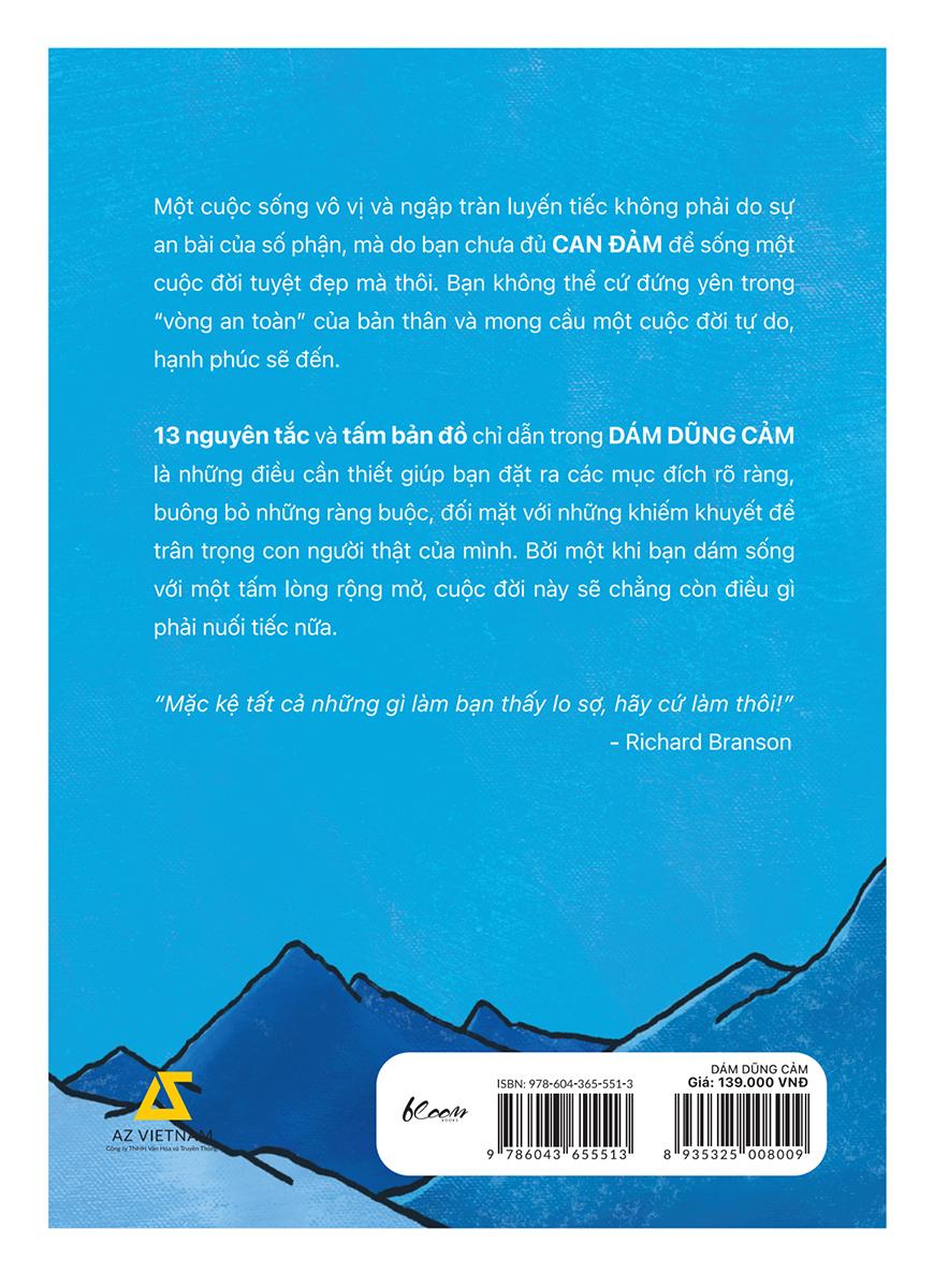 13 nguyên tắc và tấm bản đồ chỉ dẫn trong DÁM DŨNG CẢM là những điều cần thiết giúp bạn đặt ra các mục đích rõ ràng, buông bỏ những ràng buộc, đối mặt với những khiếm khuyết để trân trọng con người thật của mình. Bởi một khi bạn dám sống với một tấm lòng rộng mở, cuộc đời này sẽ chẳng còn điều gì phải nuối tiếc nữa.