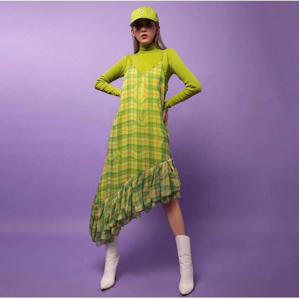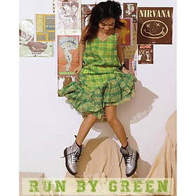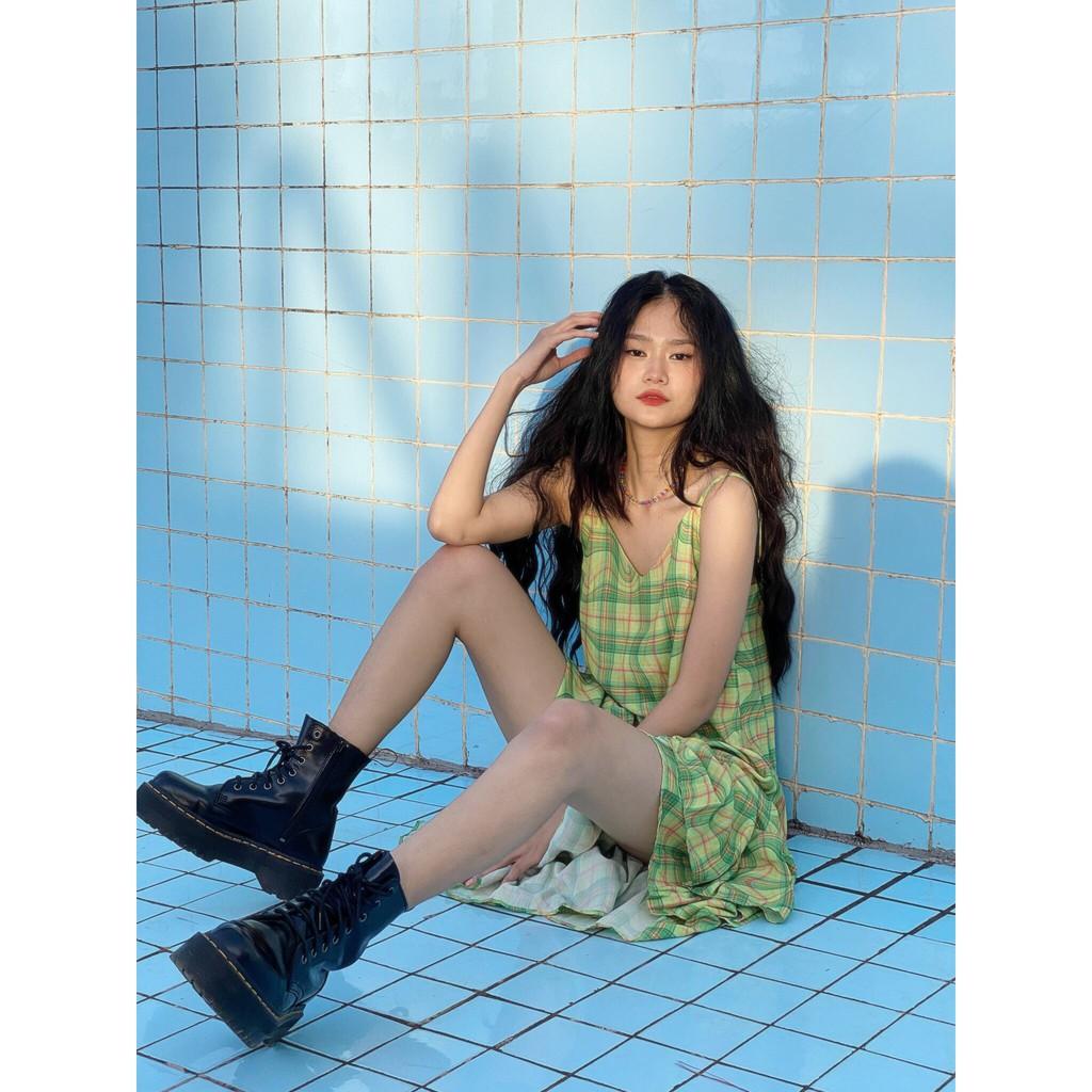 ✨Đầm Hai Dây Maxi Chân Váy Xoè Xanh TARTAN - Tartan Dress SE / Green / Tartan Pattern