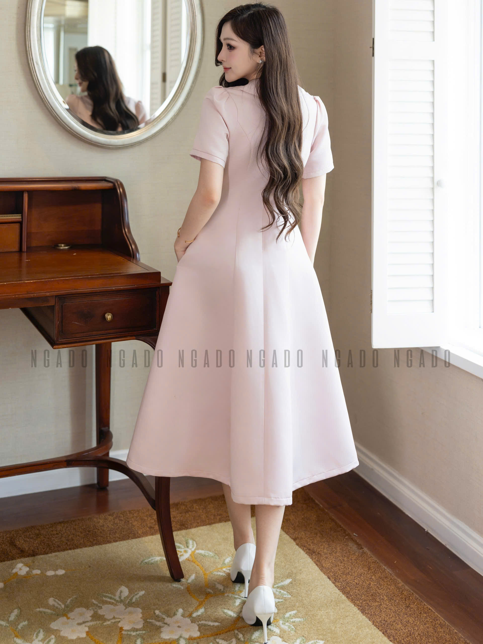 ✨Đầm hồng cổ vest NGADO , đầm công sở , dự tiệc
